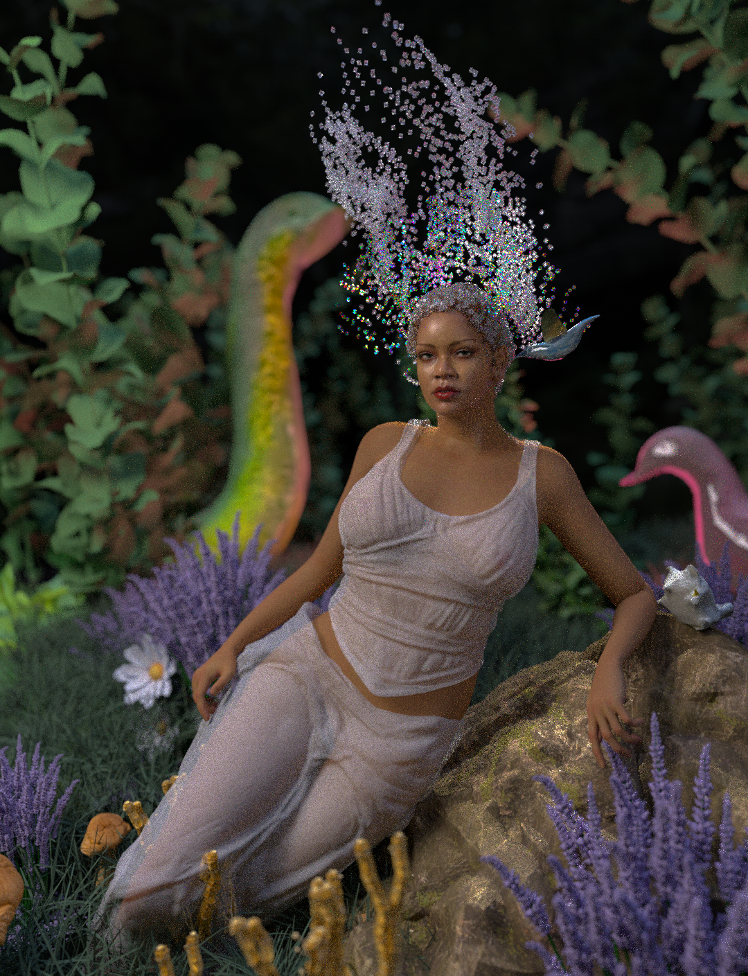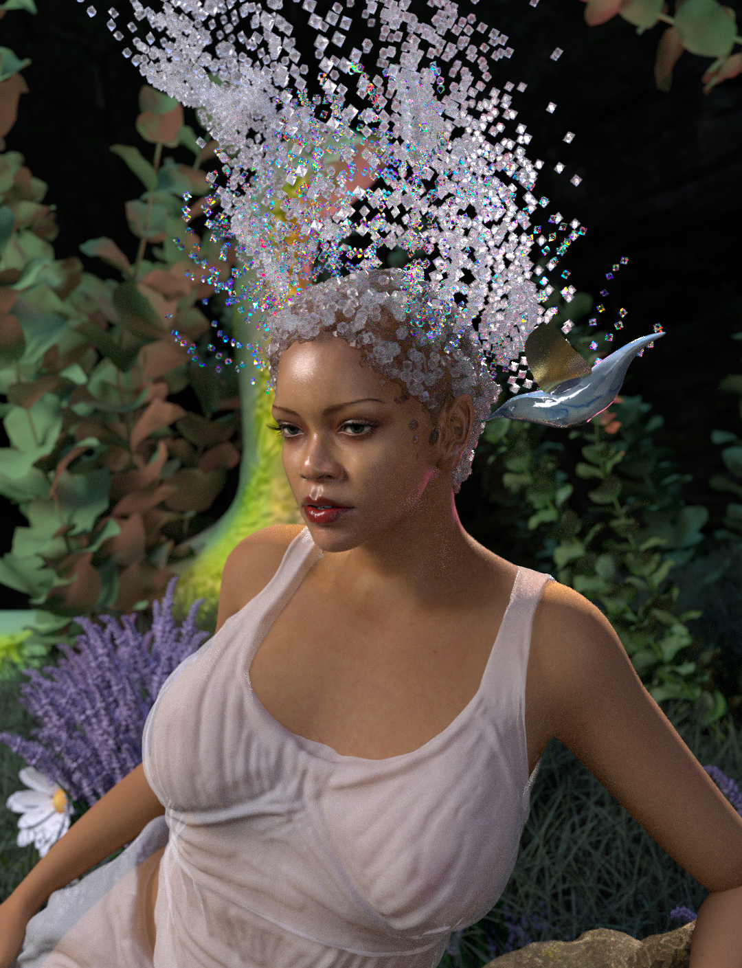 This work is inspired by a quote from Rihanna: "Makeup is there for you to have fun with. Feel free to take chances, and take risks, and dare to do something new or different." In my eyes, she is an adventurer, always curious to explore the unknown of this world.