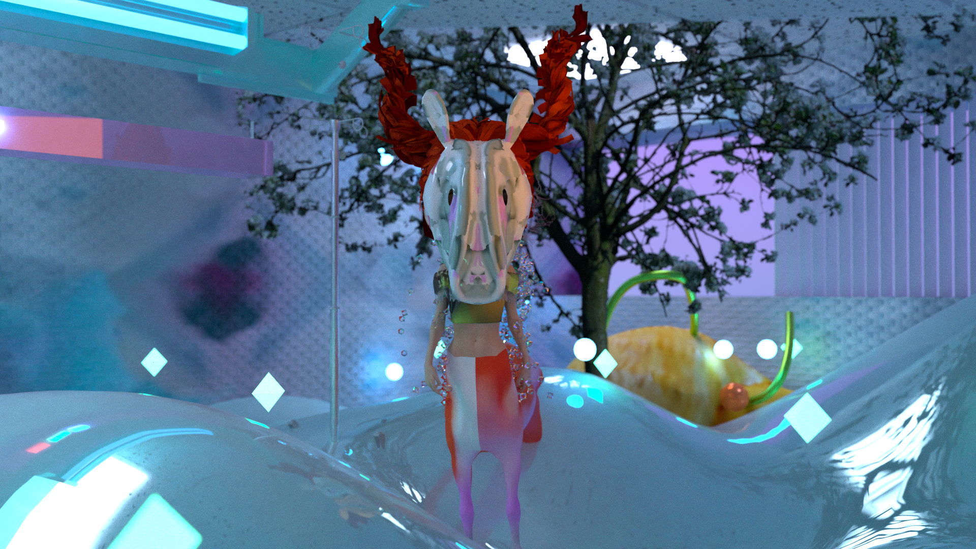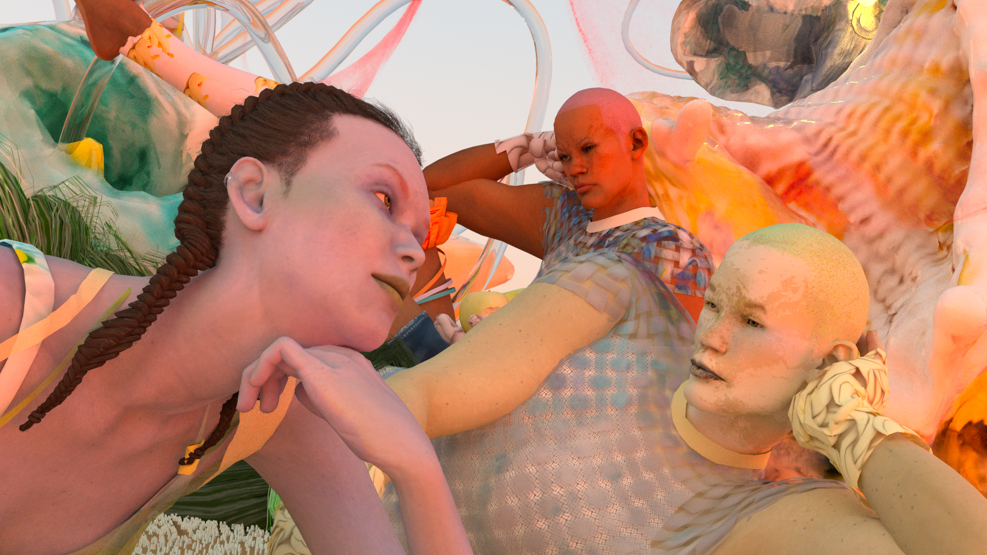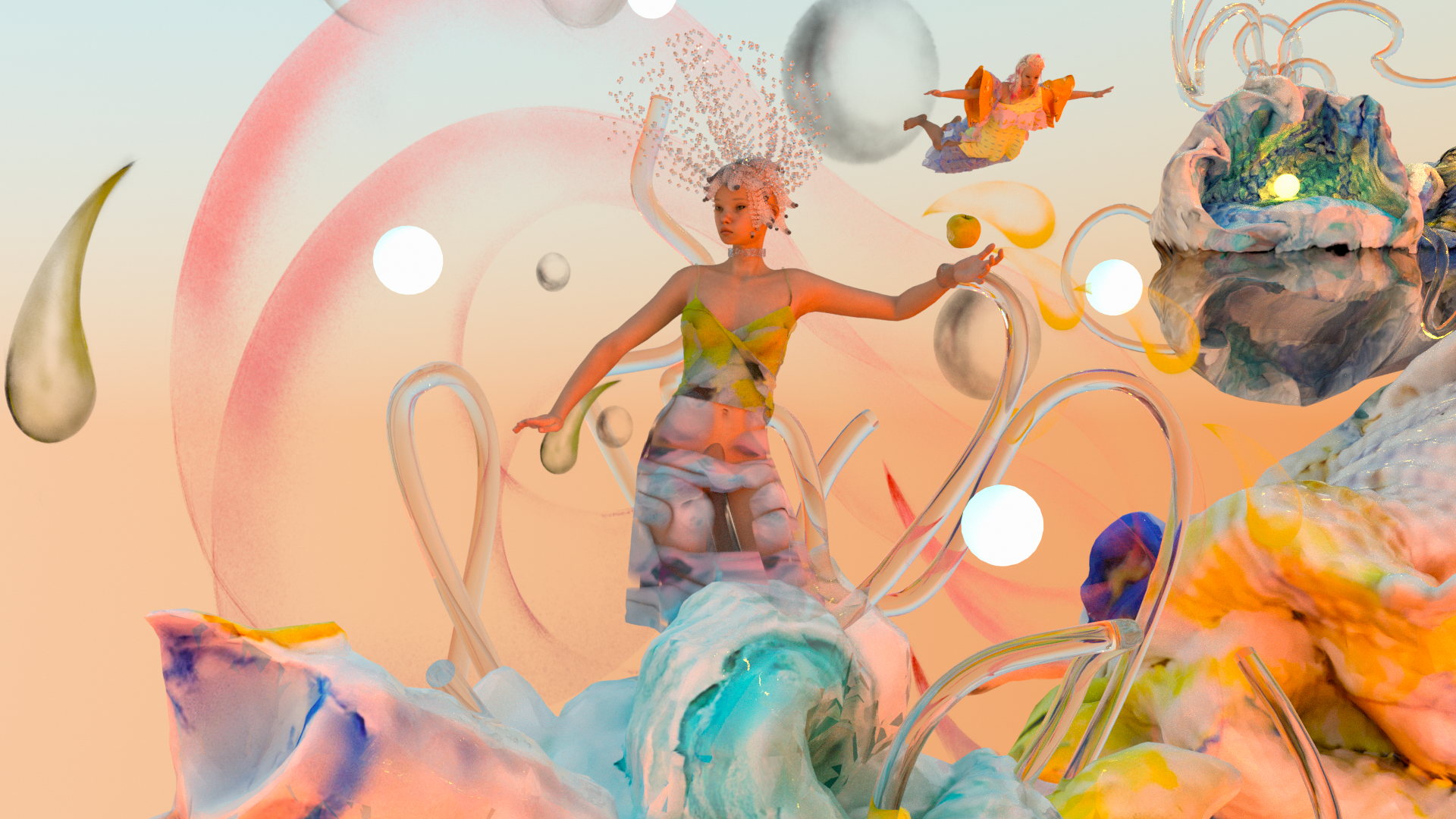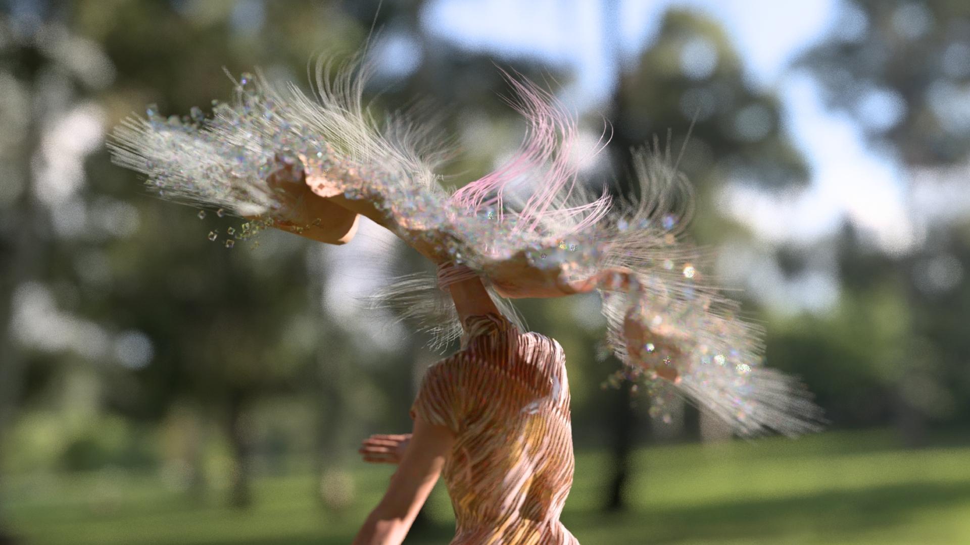 This work unfolds in the form of a fairy tale. The protagonist is a weather eye that needs power gems. The eye met different characters, including the Sun Girl, the Book Man and his partner, the Tornado Girl and the Prophet. The Weather Eye experiences a journey from naivety to confusion, from anticipation to loss, until finally relinquishing its obsession under the Prophet's hint. This piece skillfully translates the subconscious influence of cross-cultural literature on personal life experiences.Shan Hua's works are always inspired by the natural environment. She meticulously observes and explores everything around her. Her works often revolve around existence, the symbiotic relationship between natural forms and humanity, and reflections on our roles. She believes that nature has a healing effect. Watching the wind blow through the leaves, she transforms elements of the natural world into characters. They are sometimes gentle, sometimes cruel, dancing gracefully, soothing human anxieties and vulnerabilities. They attract her like destiny. She excels at combining digital identity with fashion thinking. Fashion is prominent in her character descriptions, with her animations incorporating fashion elements such as headwear, clothing, and makeup.